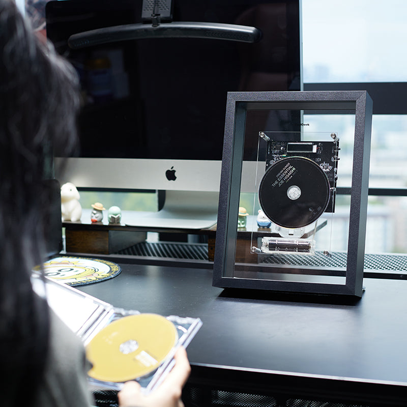 Jede CD wird zu einer sich drehenden Leinwand – Melodien tanzen im Rahmen und zwischen den Noten scheint die Zeit stillzustehen.