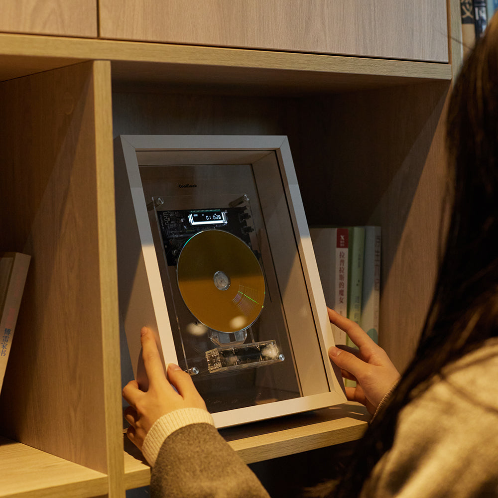 Der CoolGeek Music Frame M1 CD-Player unterstützt die Audiowiedergabe über Bluetooth (bis zu 10 Meter Reichweite) und 3,5-mm-AUX-Ausgang.